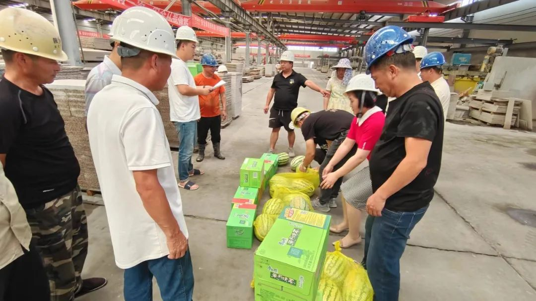 近日,陜建內(nèi)蒙礦業(yè)公司副總經(jīng)理竇春華、總經(jīng)理助理甄景輝帶著礦業(yè)公司黨政工的關(guān)心,到生產(chǎn)車間一線現(xiàn)場(chǎng),為員工送去西瓜、水及浴巾(毛巾)等防暑降溫用品。