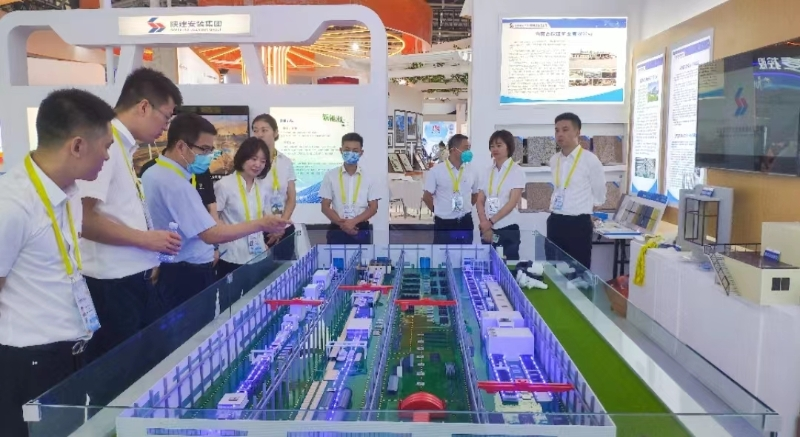 在位于T6智能制造館的陜西建工展區(qū),兩條生產(chǎn)線模型引起了現(xiàn)場“圍觀”,而這正是陜建產(chǎn)業(yè)投資集團(tuán)有限公司(以下簡稱陜建產(chǎn)投集團(tuán))展出的裝配式建筑生產(chǎn)線和硅酸鈣板系列產(chǎn)品的生產(chǎn)線,通過模型將這兩條生產(chǎn)線搬進(jìn)了絲博會的會場。