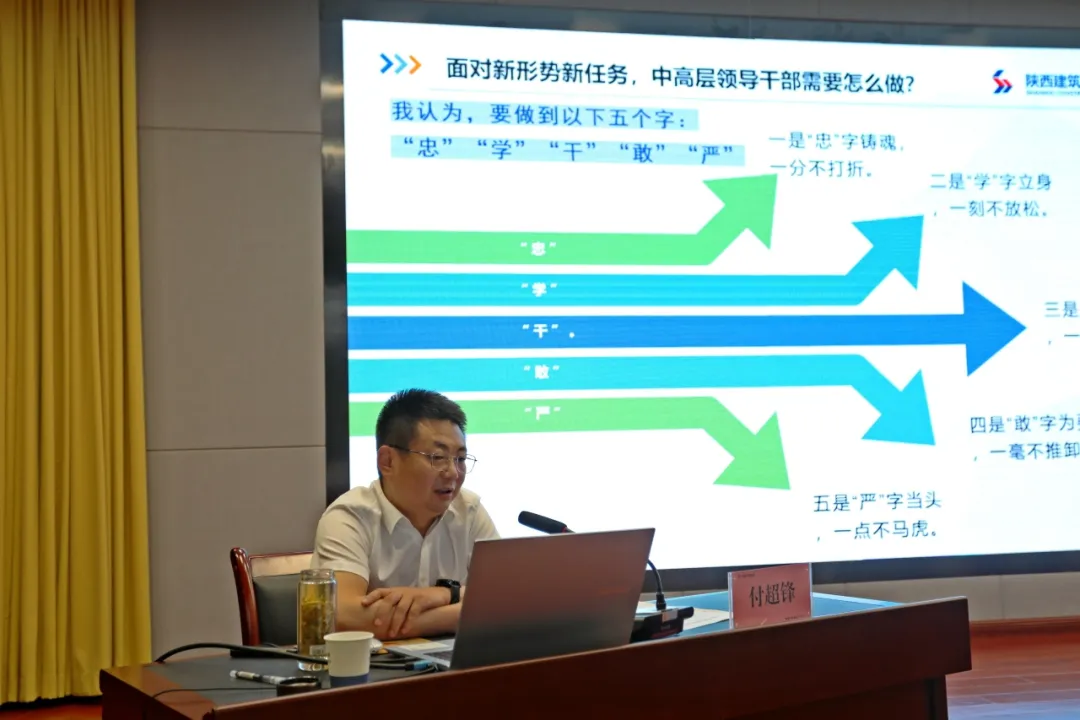 集團(tuán)黨委書(shū)記、董事長(zhǎng)付超鋒在“同心勠力 擔(dān)當(dāng)作為,做促進(jìn)企業(yè)改革發(fā)展的中流砥柱”專題黨課中強(qiáng)調(diào),黨員干部要要嚴(yán)于律己、以身作則,做到“學(xué)”字立身,一刻不放松、“干”字在先,一絲不懈怠、“嚴(yán)”字當(dāng)頭,一點(diǎn)不馬虎,要學(xué)知識(shí)、練本領(lǐng)、知敬畏、顧大局,奮力譜寫(xiě)集團(tuán)全面高質(zhì)量發(fā)展的嶄新篇章。