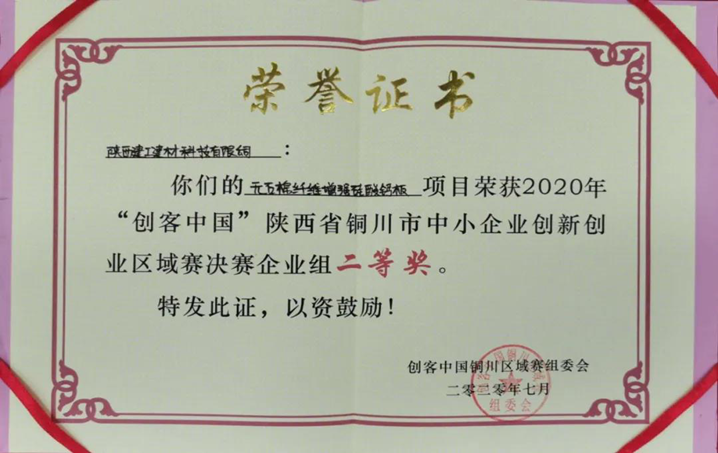 近期,陜建建材科技公司在2020年“創(chuàng)客中國(guó)”陜西省銅川市中小企業(yè)創(chuàng)新創(chuàng)業(yè)區(qū)域賽企業(yè)組決賽中獲得了二等獎(jiǎng)的佳績(jī)。